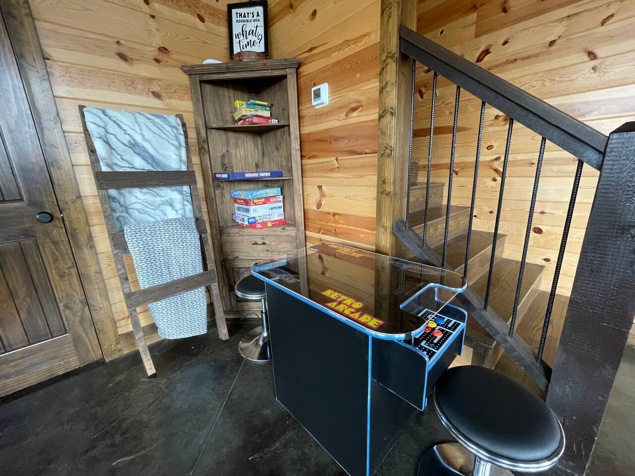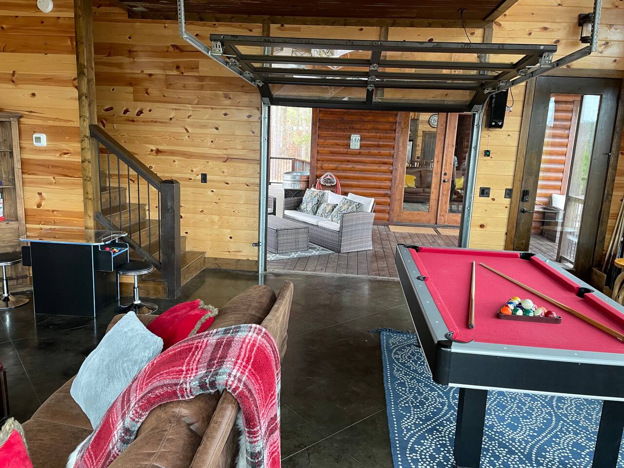Please be aware that the game/bunkhouse connected to the main house only by the deck, and has a separate entrance. This is great for families where older kids would love to "be on their own", and parents want to be away from the craziness!