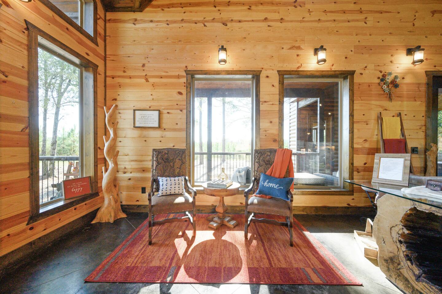 Please don’t check-in before 4 p.m. and be sure to be checked out by 11 a.m. so that we can have plenty of time to assure each guest has a clean and fresh space to enjoy. The whole cabin is yours to call home during your stay minus a couple of owners closets that are locked. You're not missing out on anything but a few extra cleaning supplies.
